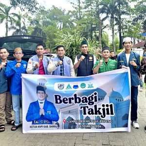 BARRU – Ketua DPD II KNPI Kabupaten Barru, Edi, S.Psi., bersama sejumlah organisasi kepemudaan menggelar kegiatan berbagi takjil kepada masyarakat pengendara yang melintas
